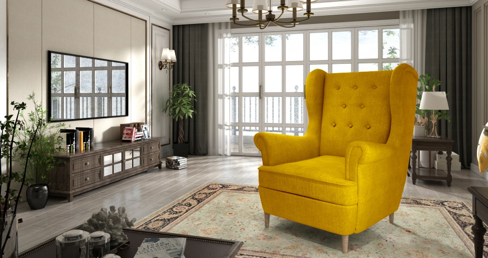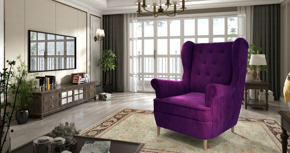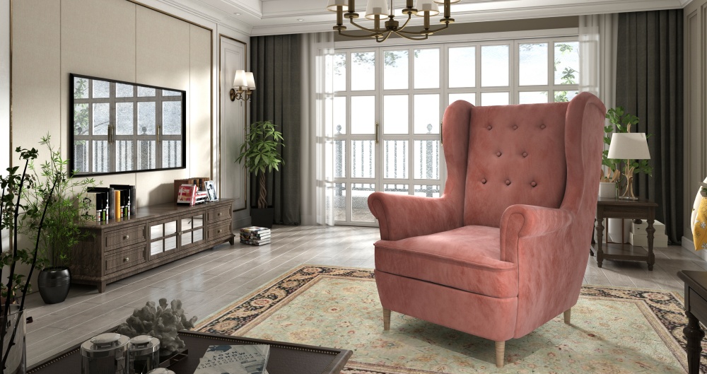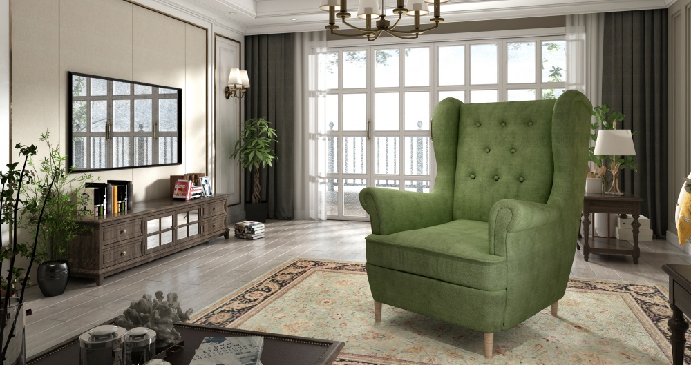 Aros is a tasteful and very chic armchair that combines original design with unearthly comfort. It will prove ideal as an element of décor whose aim is to guarantee maximum comfort when relaxing. The Aros armchair is a piece of furniture of the earhook type, which means that its characteristic features include: a spacious seat, high armrests and a backrest with a distinctive finish. When presenting our armchair, it is impossible not to mention the high quality of workmanship and fine, precise decorations, in the form of wooden legs, stitching on the armrests and quilting on the backrest. In addition, this model is available in many different colours. The high functionality of the Aros is also influenced by the type of seat filling. The juxtaposition of durable corrugated spring with soft, elastic T30 foam makes it appropriately profiled and our body properly protected during use. Aros is a unique piece of furniture that combines the pleasant with the useful - not only does it look great, but it is also highly functional, comfortable and protects our spine. Aros is a hit!