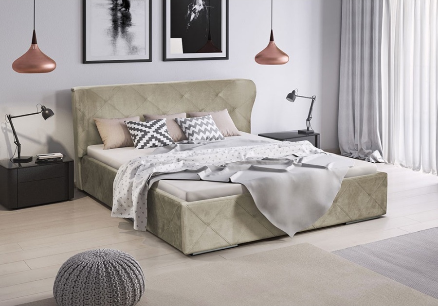 The upholstered solid and comfortable ORLANDO bed is a perfect proposal for every bedroom. A wooden frame is included in the price of the bed. The bed is made of high quality materials using modern technology. It is available in various colours. There is a possibility to make a bed with a bed linen container and metal pneumatic lifting frame.
