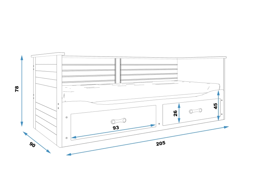 When unfolded, this youth bed expands to a sleeping area of 160 × 200 cm, suitable for two people, making it ideal for hosting guests and a great choice for a siblings' room.