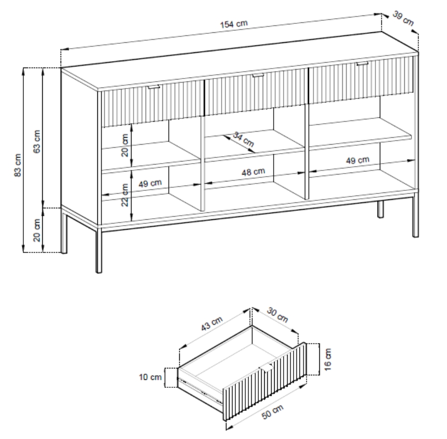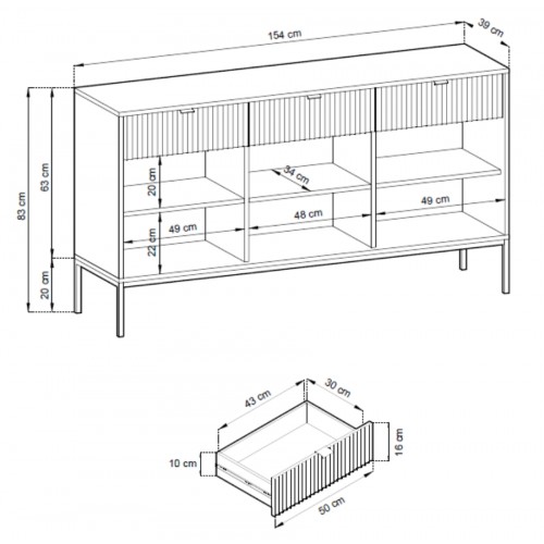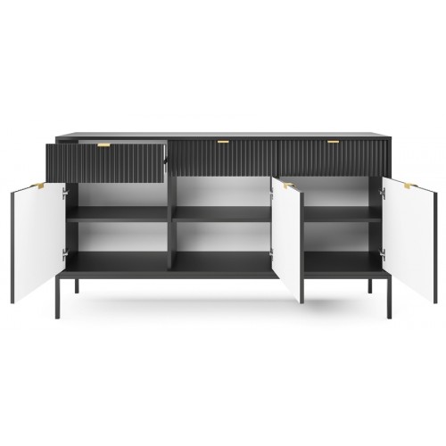 Nova collection is furniture with a simple and modern form with a decorative fluted front is a ''must have'' for lovers of modern design. The metal base gives lightness to the structure and the whole is complemented by decorative gold-colored handles and subtle metal legs in black.