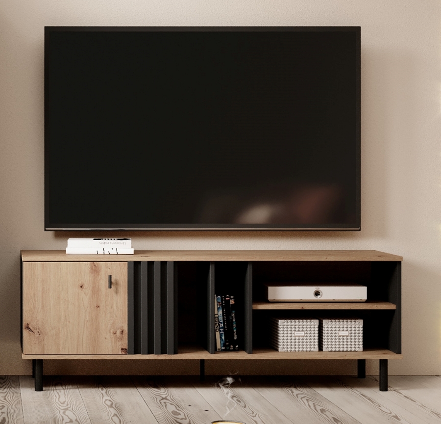 MADIS is a set in the fashionable colors of natural oak, combined with contrasting anthracite. The subtle use of lamellas is in line with modern design trends and emphasizes the character of the solids. Custom handles mounted vertically and black metal legs give the furniture a lightness. The collection is designed for anyone looking for an unconventional design, which will give the interior an amazing, original look.