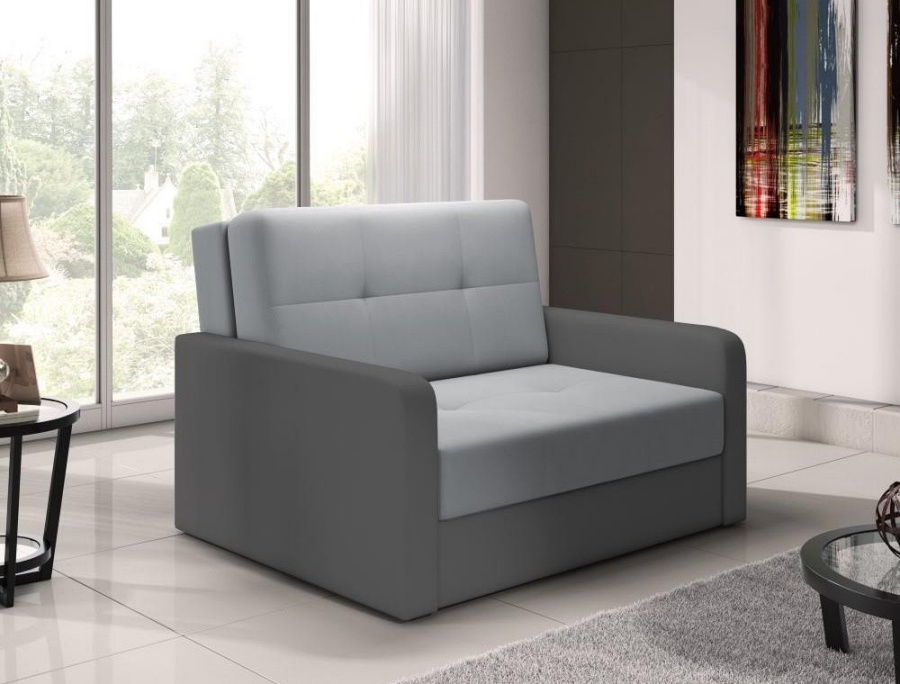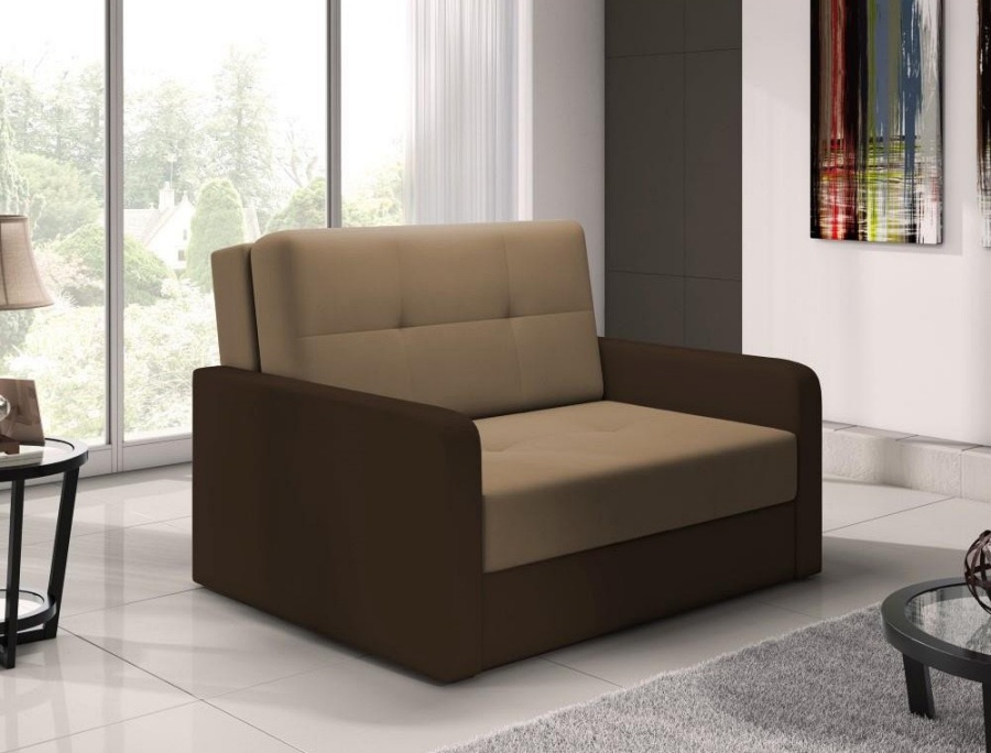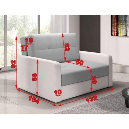 Comfortable and Funcional chair bed TOP2 Perfect for daily use and sleep. Made from high quality fabrics. Frame is made of solid wood and furniture board. To made seat used BONNEL springs and foam to keep high comfort level. The armchair has been equipped with an OPENING MECHANISM. Has one storage box.