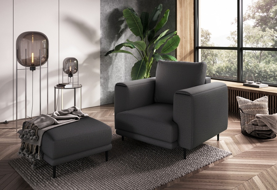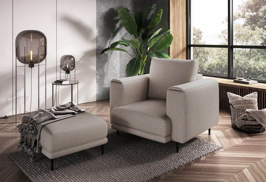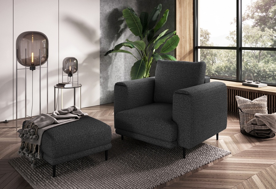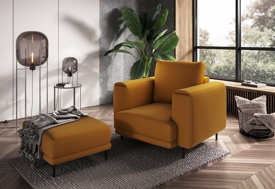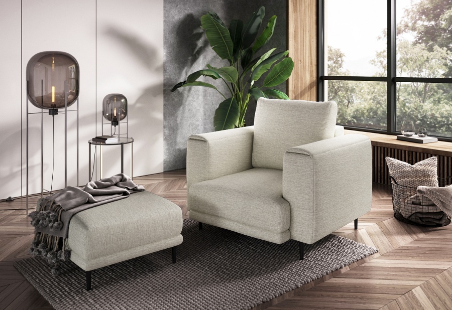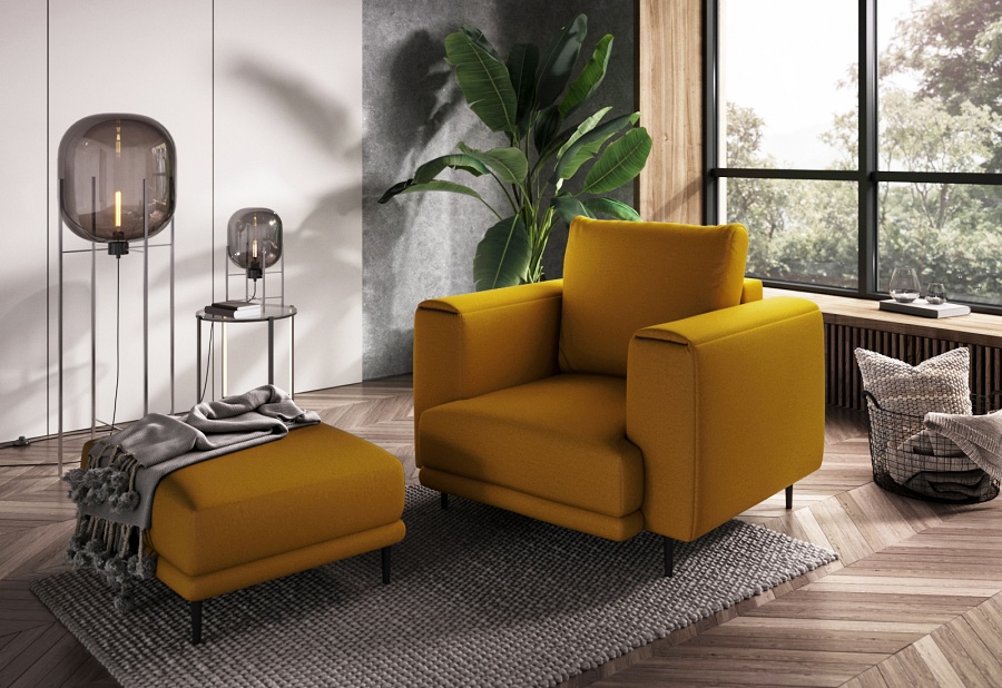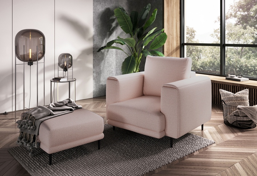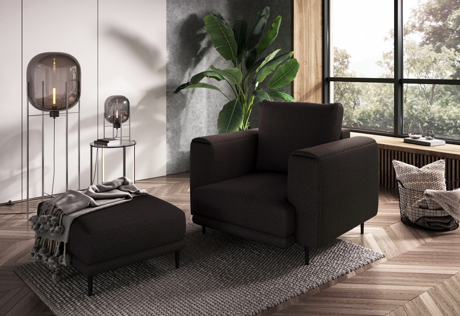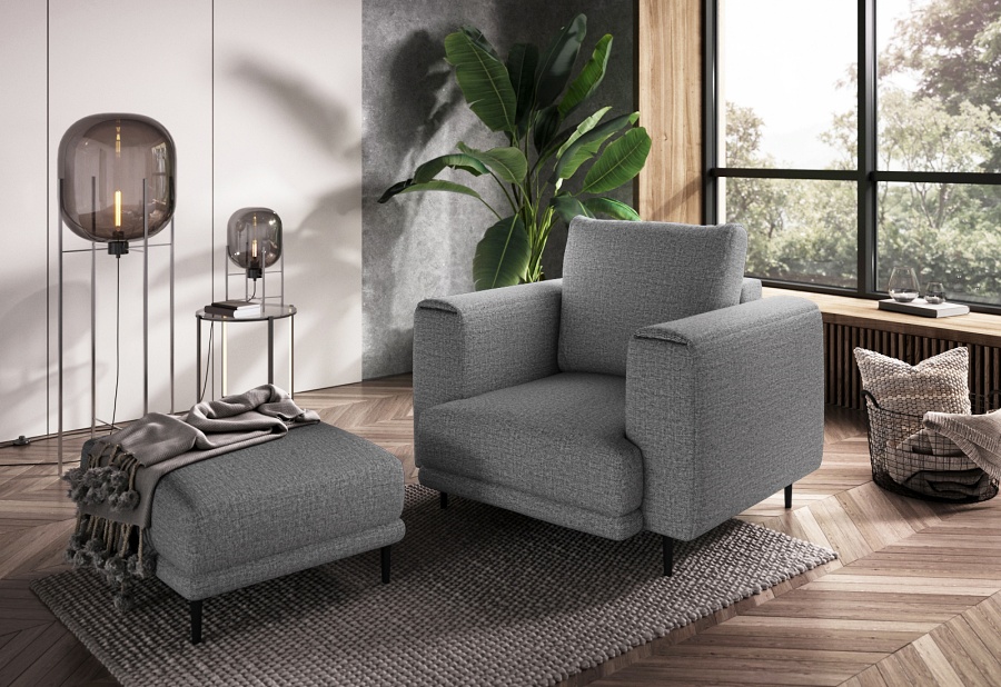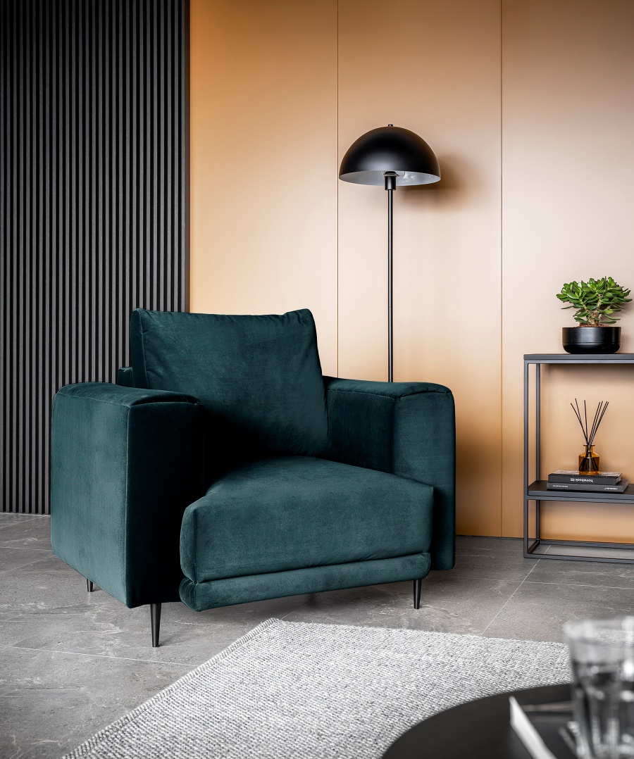 The Dalia armchair brings not only extra seating to a space, but also traditional style. This piece of furniture is a fresh take on the classic look of room armchairs. The high 13-centimetre legs make it possible to use cleaning robots without worrying about missing a section of the floor under the furniture. The Dalia armchair is built on four, black, tapering legs made of metal and its frame is striking in a discreet silhouette full of classic charm. The armchair is upholstered in a fabric of your choice and the back cushion is filled with foam granules to provide support while sitting. The seat of the Dalia armchair is a combination of highly-flexible and damage-resistant HR foam and type B corrugated spring. Such a mixture gives long life to the armchair and makes it really comfortable and convenient.