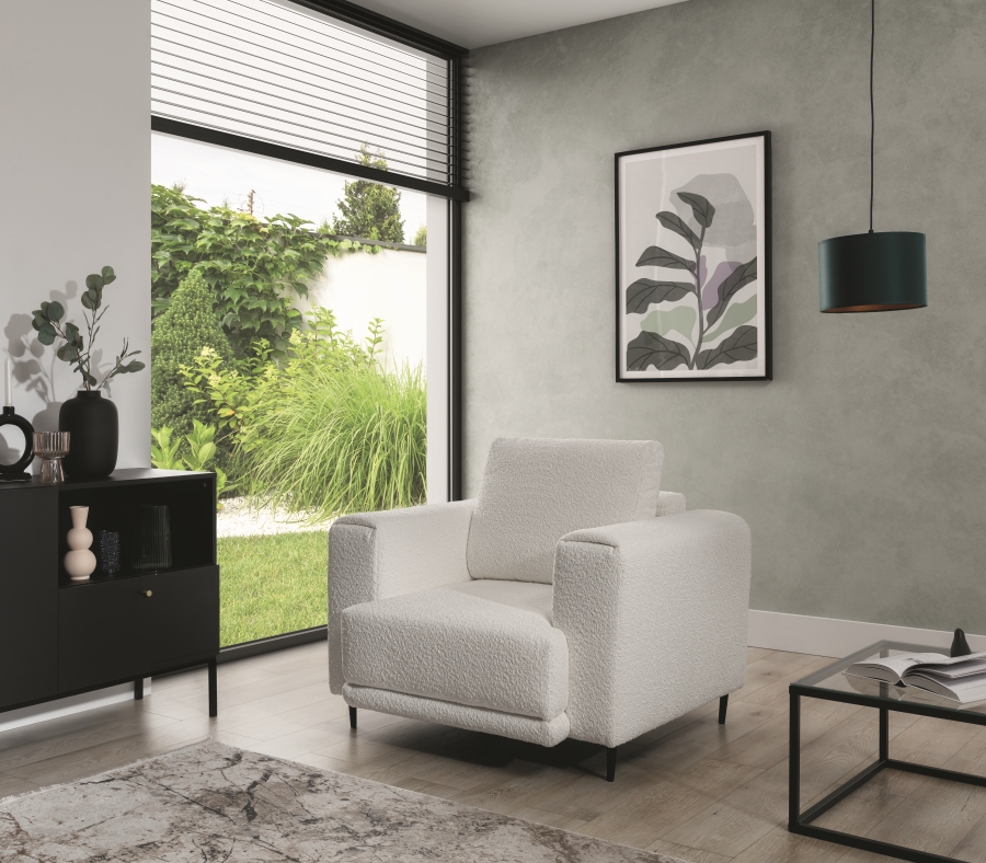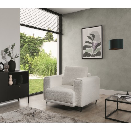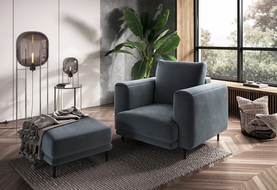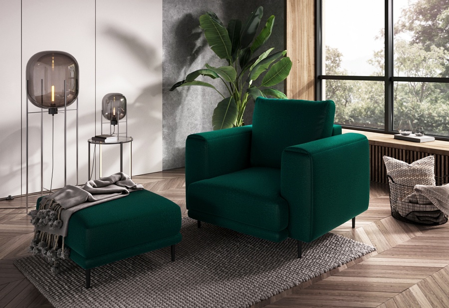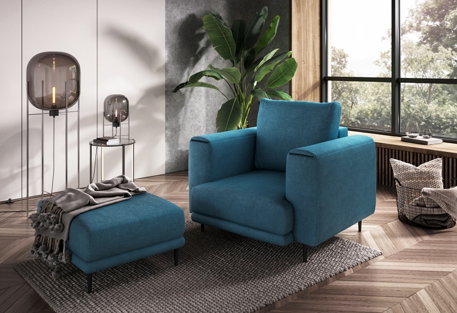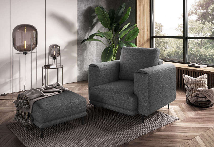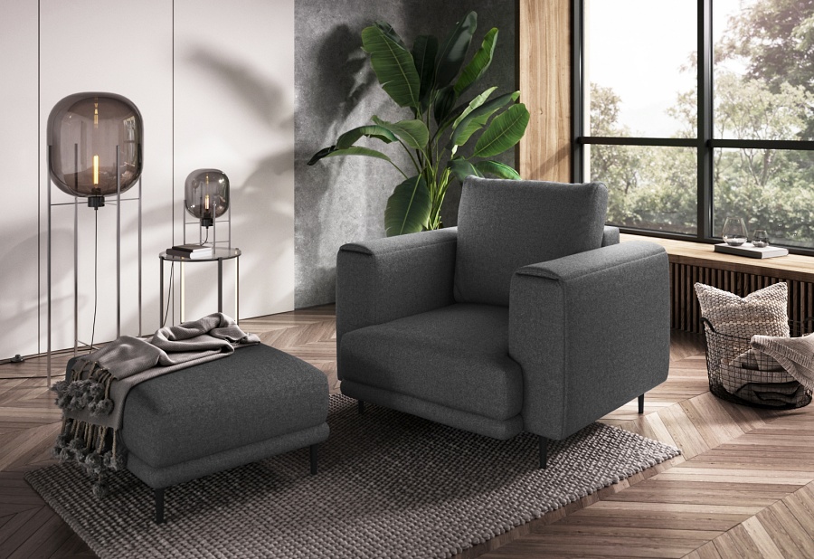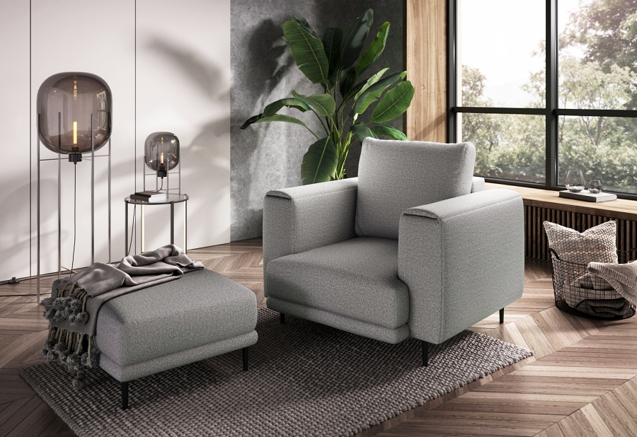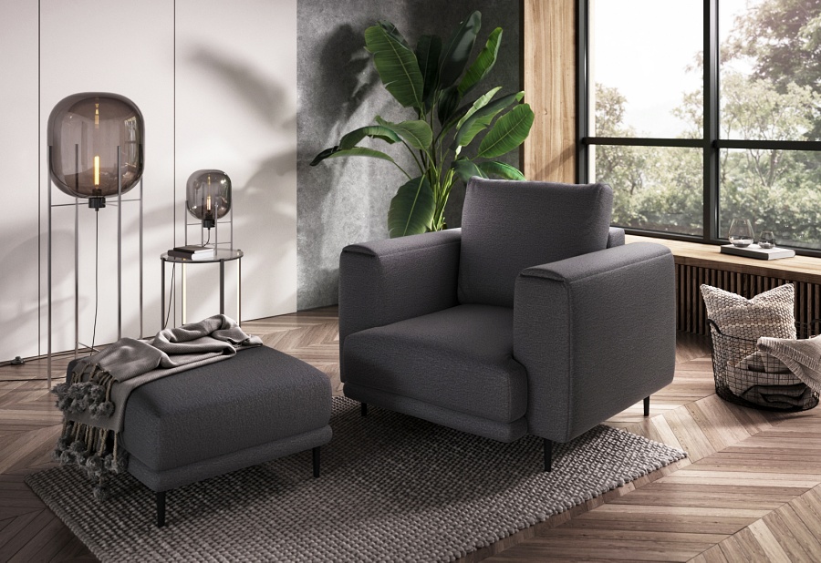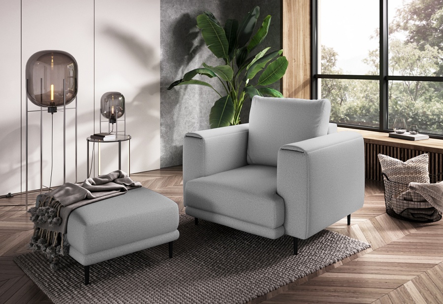 The Dalia armchair brings not only extra seating to a space, but also traditional style. This piece of furniture is a fresh take on the classic look of room armchairs. The high 13-centimetre legs make it possible to use cleaning robots without worrying about missing a section of the floor under the furniture. The Dalia armchair is built on four, black, tapering legs made of metal and its frame is striking in a discreet silhouette full of classic charm. The armchair is upholstered in a fabric of your choice and the back cushion is filled with foam granules to provide support while sitting. The seat of the Dalia armchair is a combination of highly-flexible and damage-resistant HR foam and type B corrugated spring. Such a mixture gives long life to the armchair and makes it really comfortable and convenient.